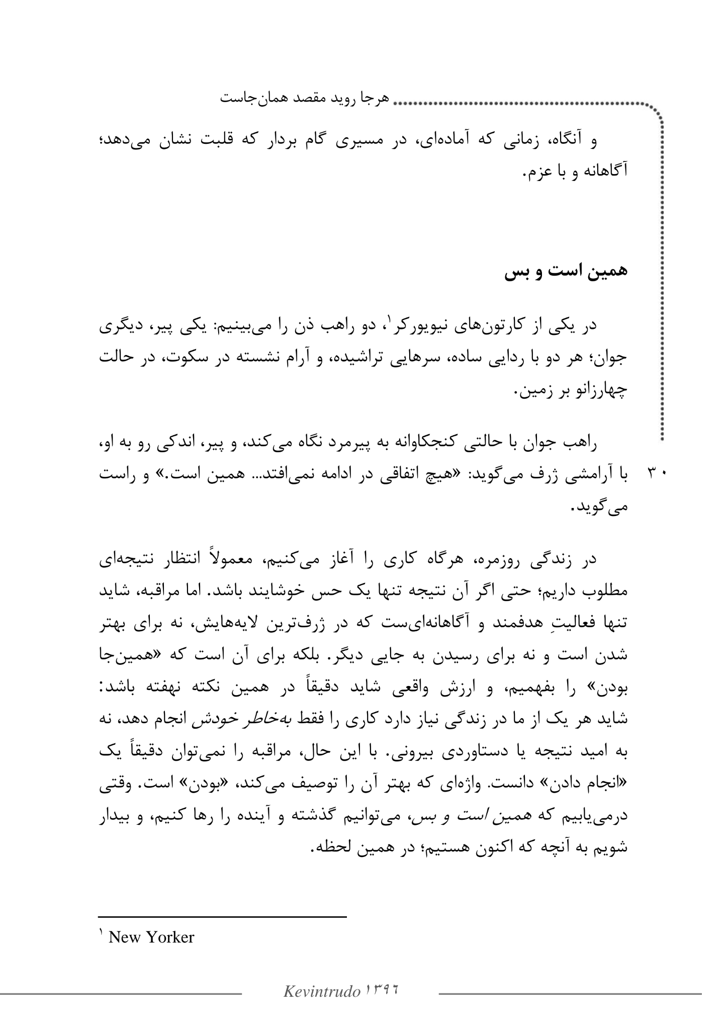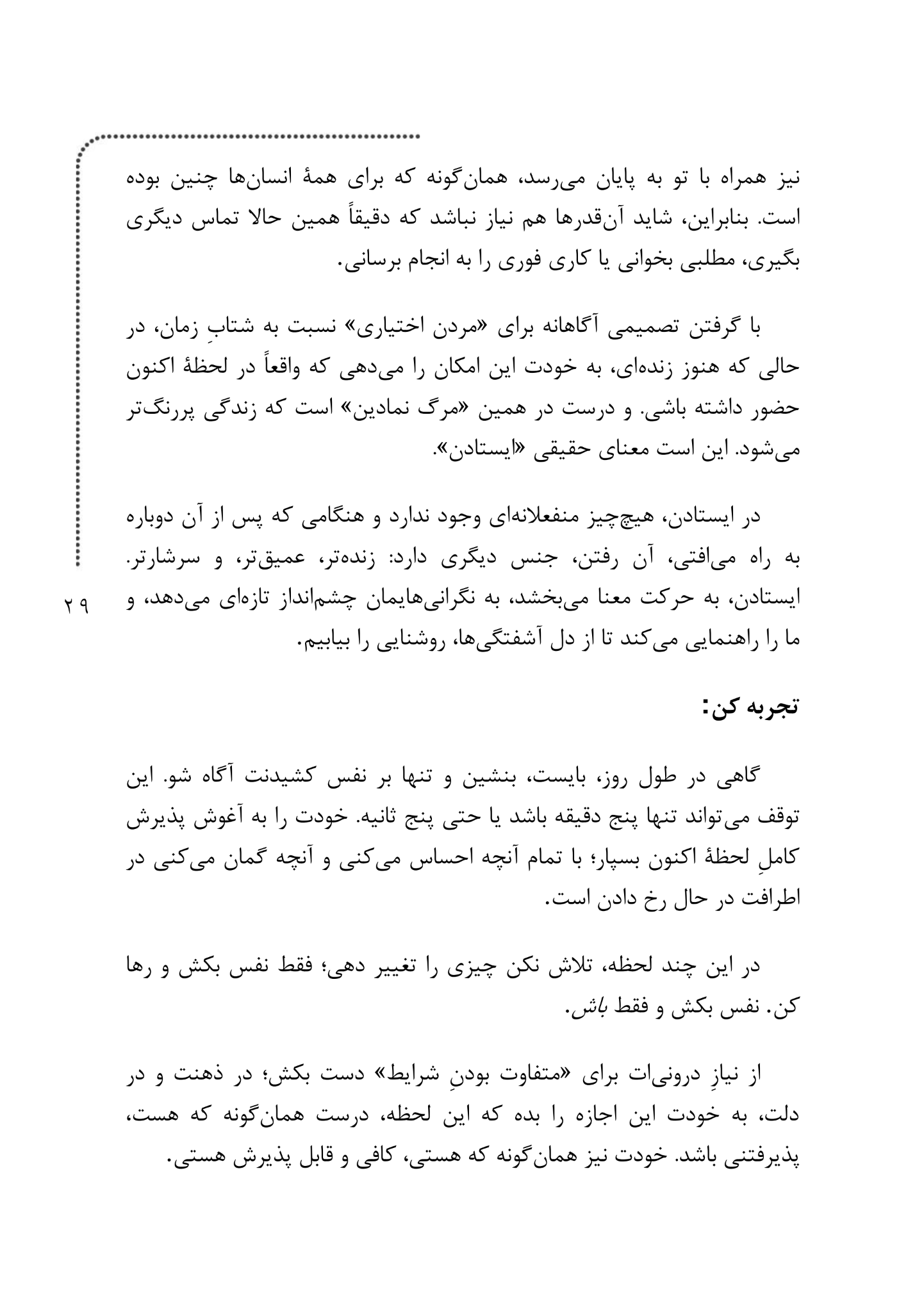 مقصد واقعی هر سفر درونی، جایی خارج از ما نیست؛ بلکه لحظهی اکنونی است که در حال زندگی کردنش هستیم.