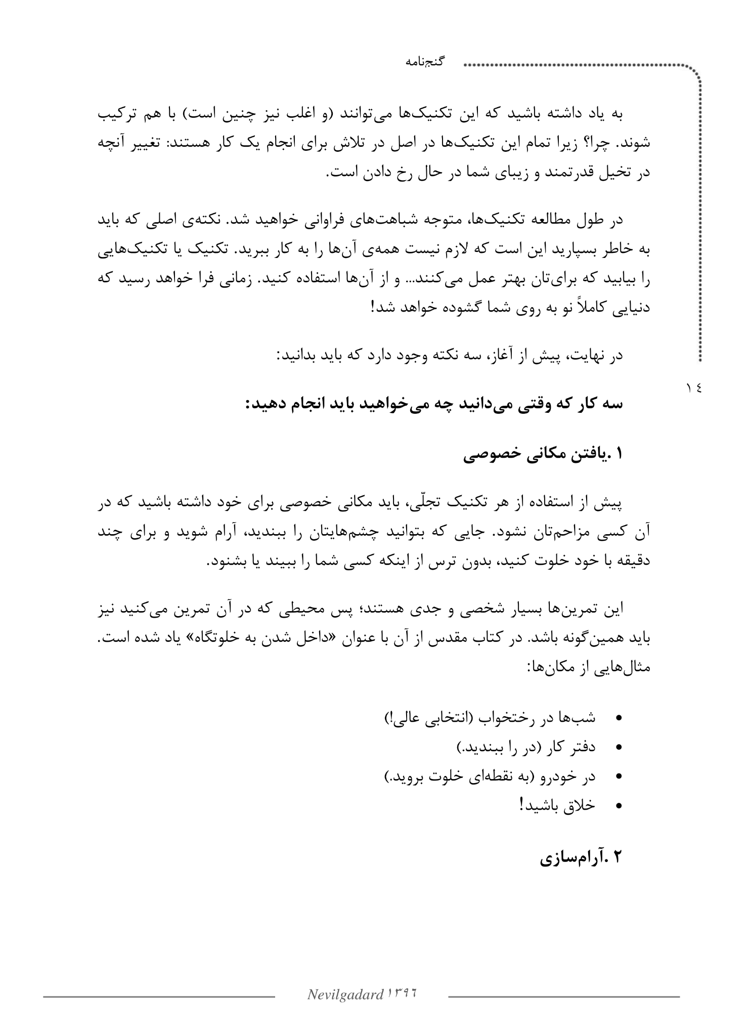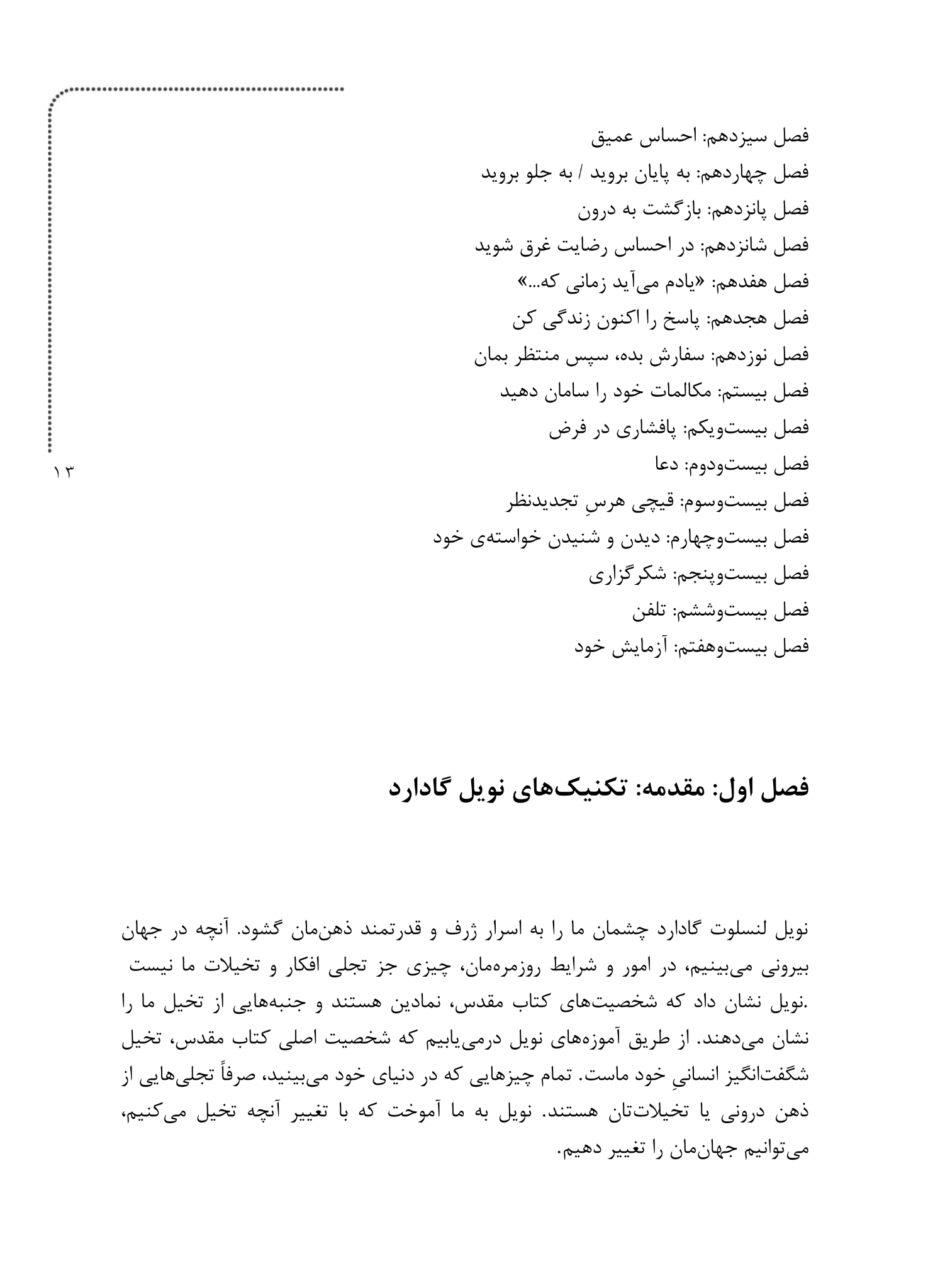 مطالعه کتاب گنج نامه از نویل گادارد به مخاطب کمک میکند تا باورهای محدودکننده را شناسایی و جایگزین الگوهای مثبت کند و مسیر تحقق اهداف را هموار سازد. آموزههای کتاب برای همه کسانی که به دنبال رشد شخصی و موفقیت هستند، کاربردی و الهامبخش است.