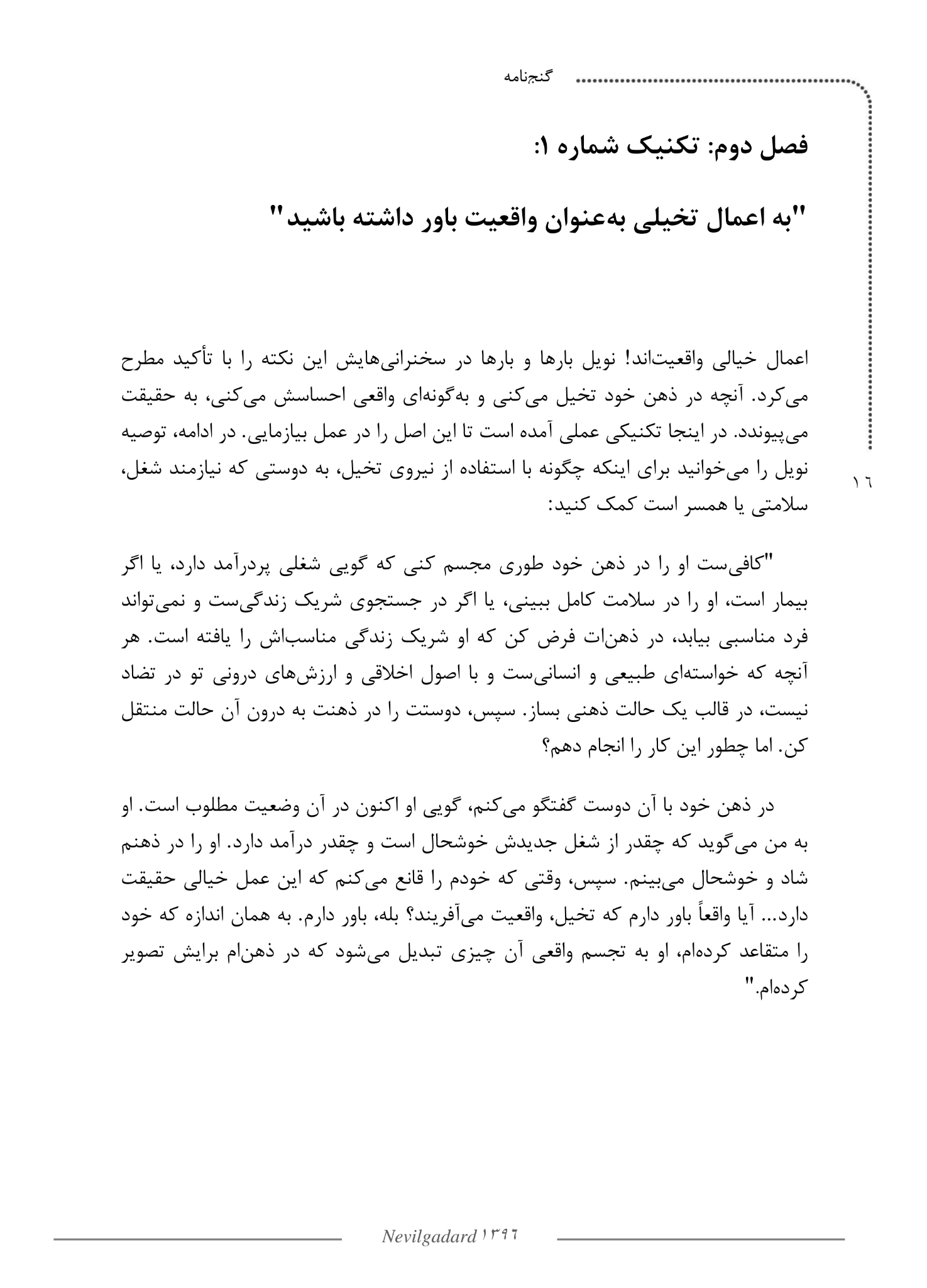 کتاب گنج نامه نوشتهی نویل گادارد اثری کلاسیک و جامع در زمینه قانون جذب و قدرت ذهن است. این کتاب با ترجمهی دقیق مریم رشیدی توسط نشر کوانتوم منتشر شده است.
